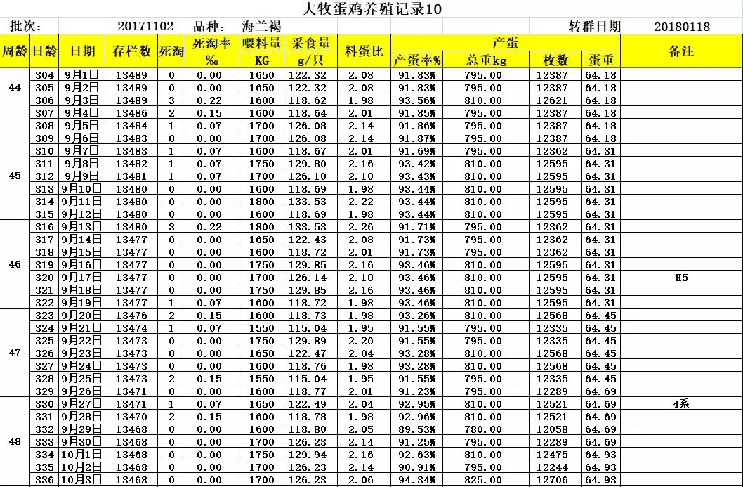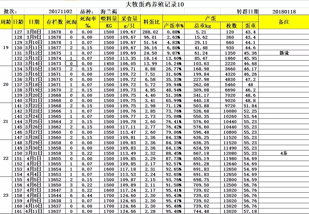 三、大牧飼養華裕海蘭褐詳細生產數據
