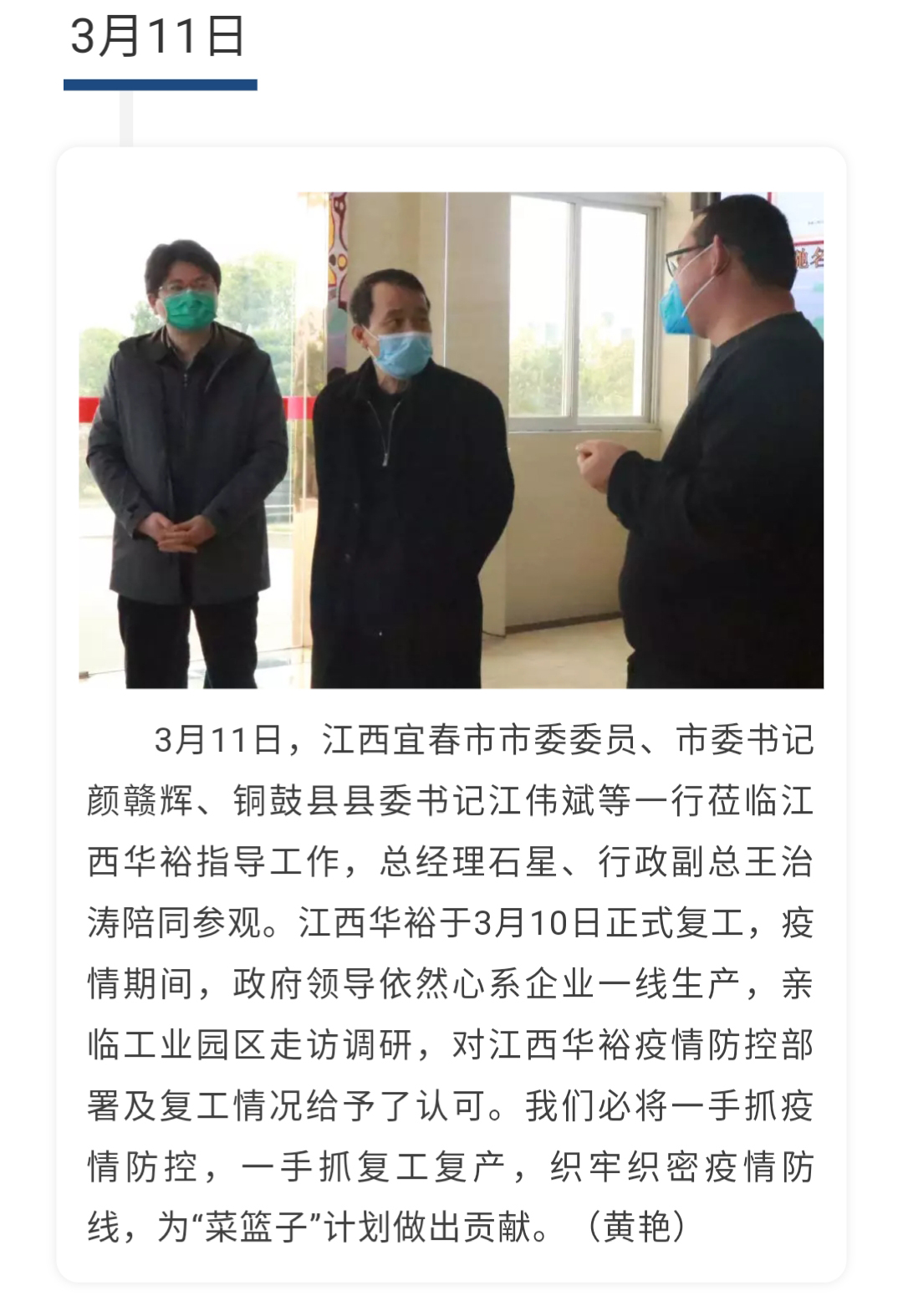 【一周快報】江西省宜春市委書記顏贛輝等一行蒞臨江西華裕