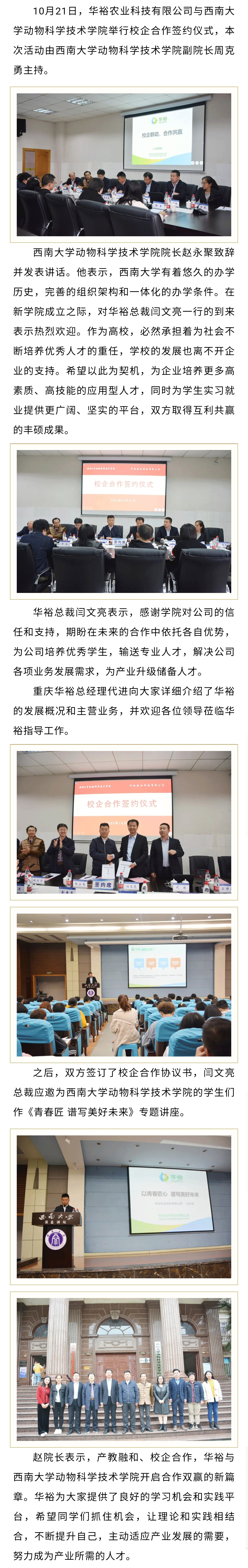校企聯動 合作共贏——華裕與西南大學動物科學技術學院簽約儀式圓滿成功